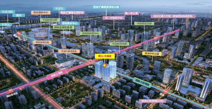 地铁3/14号线无缝对接、奥体大道、欧亚大道,串联大雁塔、曲江、高新、小寨,通达全城。