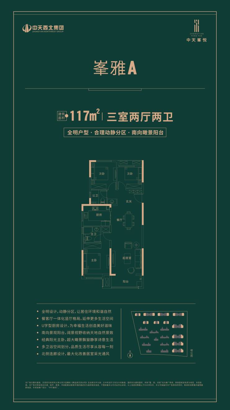 中天峯悦,继中天宸悦后中天又一品质人居钜著,立势大西安黄金枢纽,占地约131.36亩,总建筑面积约24.2万㎡ ,规划总户数1499户,约2.0容积率,构筑纯翠匠师臻境。