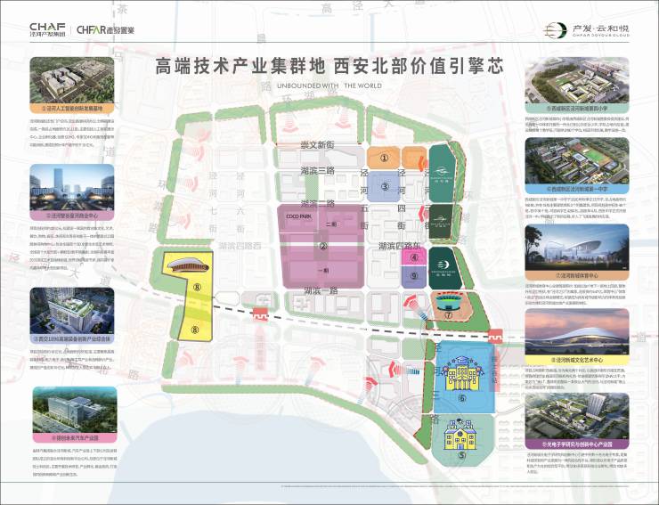 崇文塔:位于项目东侧2公里,中国现存第一高砖塔,始建于明万历年间,素有“南有大雁塔,北有崇文塔”之称,未来泾河新城将“崇文塔”打造成为全国文化保护与大西安现代文明城市新标杆, 规划“一塔四馆”的组合。