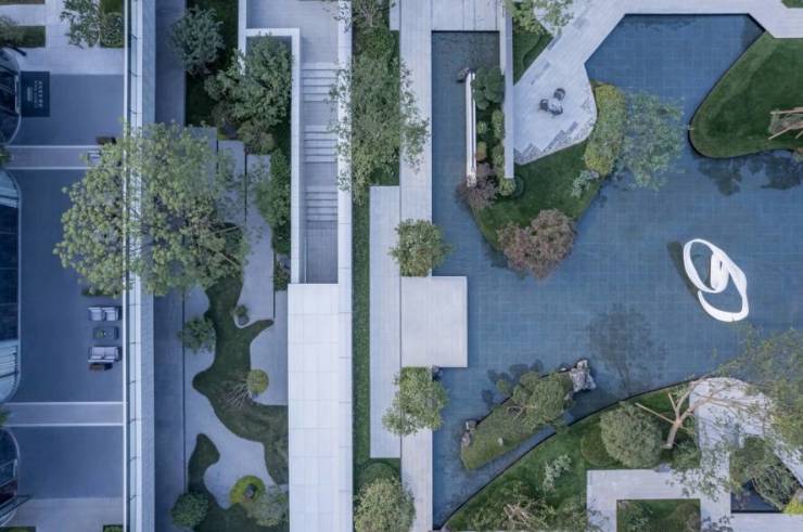 北接约30米长城市绿化带打造全民健身运动型场地,内设“一环双轴两区·三巷五庭”园林景观,创建六大配套场景,打造园中有院、院中有宫的东方意境,构筑内外皆公园的自然延伸。