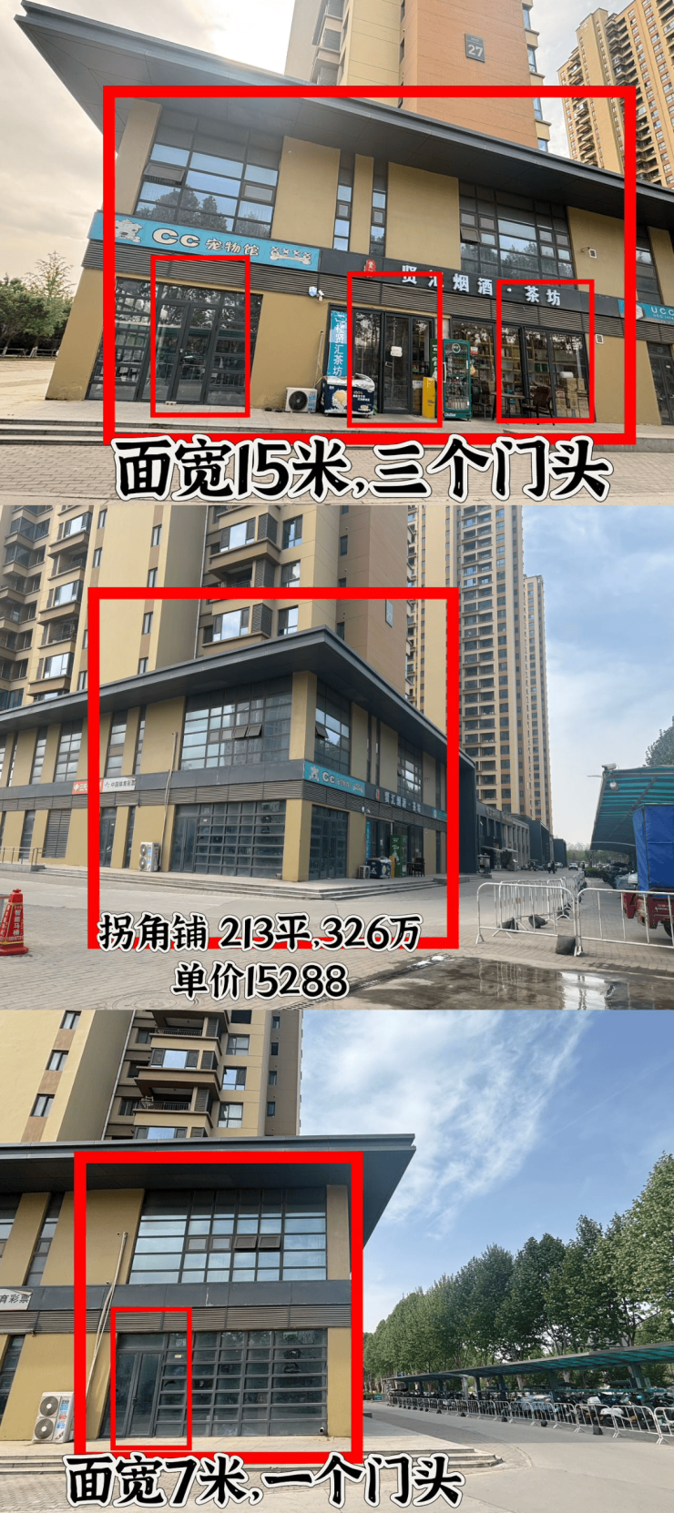 产品:22米开间三个门头,至少可以分三间单独出租。十字路口拐角位置。对面就是电动车充电桩,自助洗车桩,公交车站,去小学必经之路,目前茶坊麻将馆用了二楼和1/3一楼。