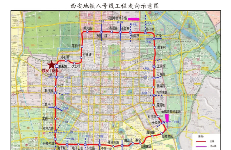 交通:地铁8号线丰禾路站(在建中),预计2025年开通,开通后3站到高新,畅行西安各个区域,与西安主城目前开通的所有地铁线路(1-6号线)接驳,被称为“换乘之王”。