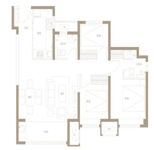 住宅面积:约95-126㎡,三室、四室户型;2梯3户、2梯4户