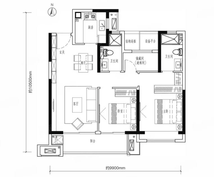 3室2厅2卫1厨, 99平米