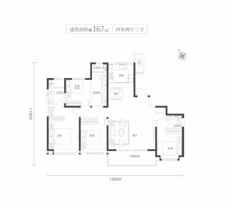 宽境横厅|双卧套房|全明三卫|餐厨一体|家政空间