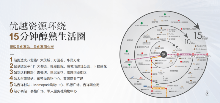 7站通勤圈,高新路CBD,科技路CBD,唐延路CBD,锦业路CBD,华为软件园等商务产业集群
