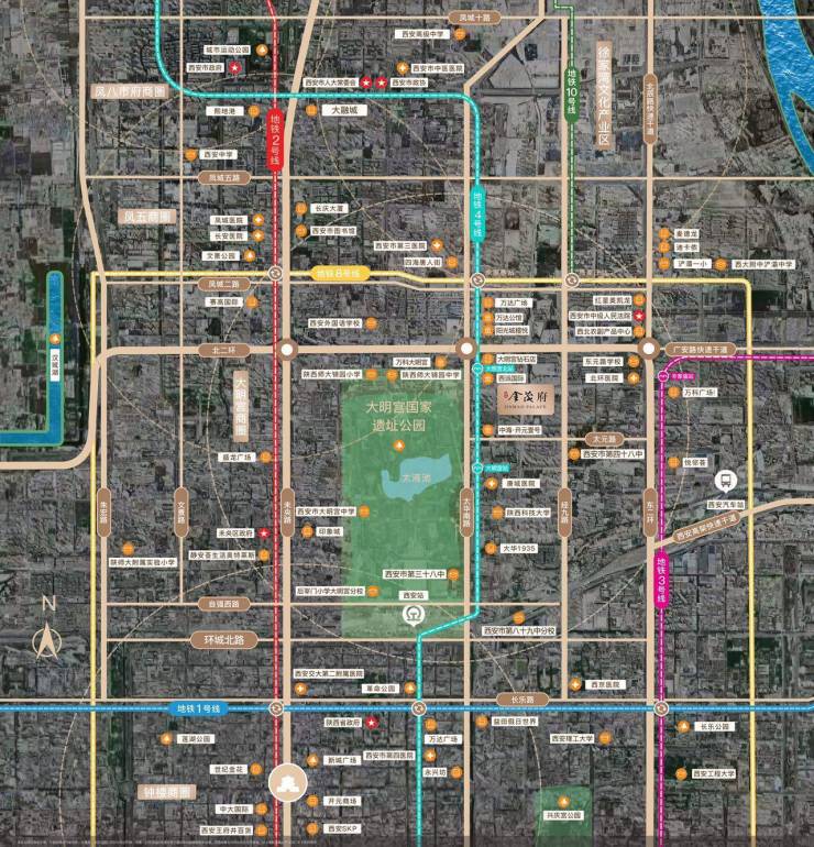 曲江在2019年接管北郊大明宫片区,打造以文化旅游为核心区域,大明宫板块是曲江管委会和未央区政府斥巨资打造的豪宅区域,随着大明宫板块豪宅区的形象形成,各品牌开发商拿地入驻,土地资源锐减。周边地产大牌云集,包括万科、中海、万达、龙湖等各开发商均在此打造最高端TOP系类。
