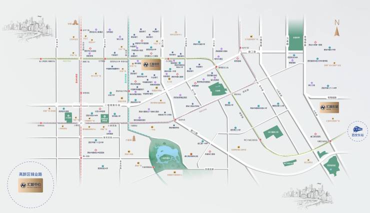 本案距离西安东站仅5km,车行13min,承接东站片区发展的优越势能
