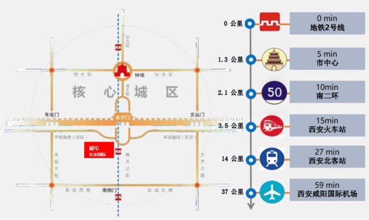 高铁:距西安北站18公里,驾车约40分钟