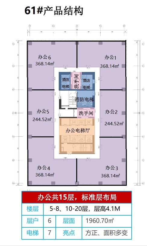 2、项目在售产品 61#整栋(5A甲写+酒店)