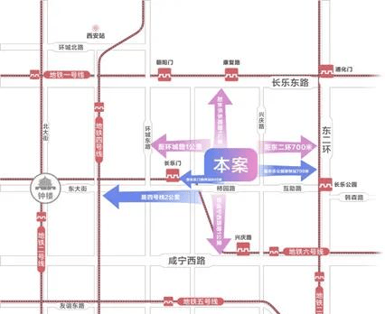 项目毗邻环城东路、东二环两大主环线;地铁1、3、4、6号地铁线环绕,距离地铁3号线长乐公园站约800米;地铁6号线长乐门站距离项目约900米;地铁1号线康复路站距离项目约1000米;地铁4号线大差市站距离项目约2000米;兴庆宫园北门站、兴庆路互助路口站包含:8路 ; 15路 ; 27路 ; 37路 ; 43路 ; 102路 ; 203路 ; 228路 ; 240路 ; 300路 ; 401路 ; 408路 ; 410路 ; 517路 ; 602路 ; 709路等近二十条公交线路,从交通出行而言,区域内路网四通八达。