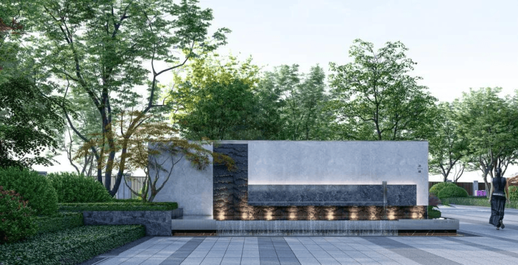 多重归家礼序,步步尊崇。一进门庭迎宾,铝板格栅大门搭配仿石材瓷砖营造高门望府的尊贵感,配合顶面线性灯带,构成归家迎宾的仪式阵列;二进山水中轴,森系雅居景观设计,层层铺陈,步移景异;三进楼栋大堂,精致绿植层叠,营造花园式入宅,酒店式入户门厅,高品质瓷砖、金属等材质,与顶面线性灯带、大堂内艺术画装饰相映衬,演绎精奢归家礼序