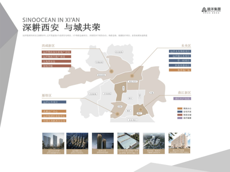 远洋集团已深耕西安多年,已开发建设3个品质住宅项目,2个物流仓储项目,并投资多个商业办公、物流仓储、健康医疗、业务拓展加速推进。