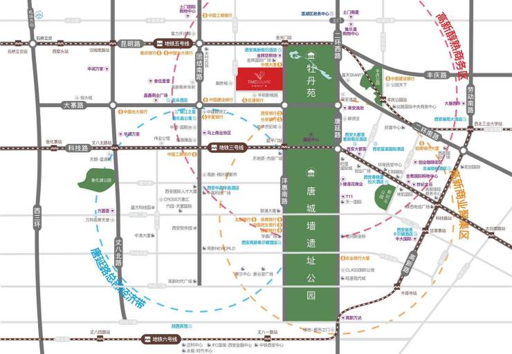 太和时代广场紧邻地铁3号线、5号线(人才专线)、8号线(西安市环线),形成颇具带动力与辐射力的便捷立体式交通路网。