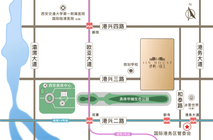 项目位于西安国际港务区奥体轴公园北