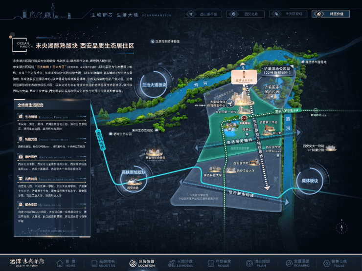 ③醇熟板块、西安品质生态居住区:未央湖片区将打造成为休闲度假、高端住宅、颐养医疗之地,理想的人居住所。