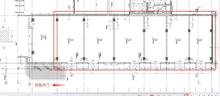 5.预留区域:商铺门口距红线约13米。