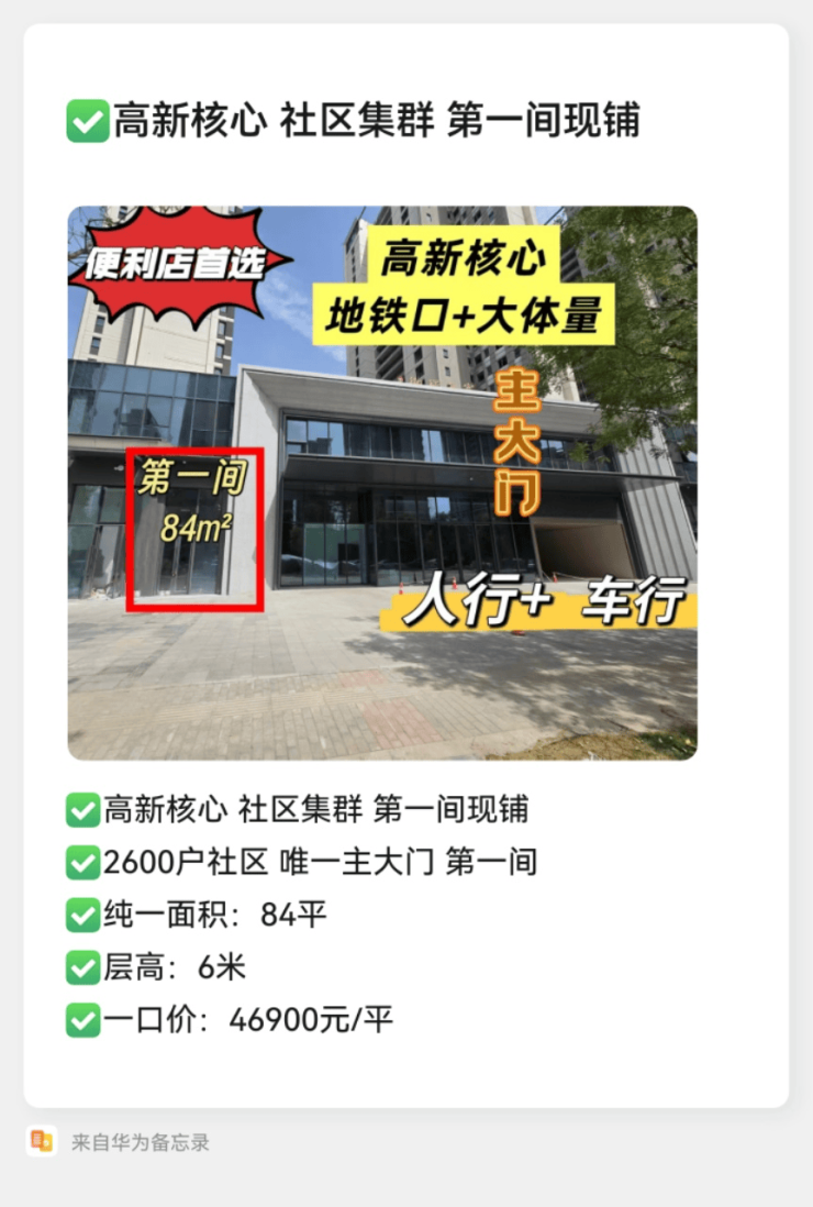 高新社区大门口第一间商铺在售