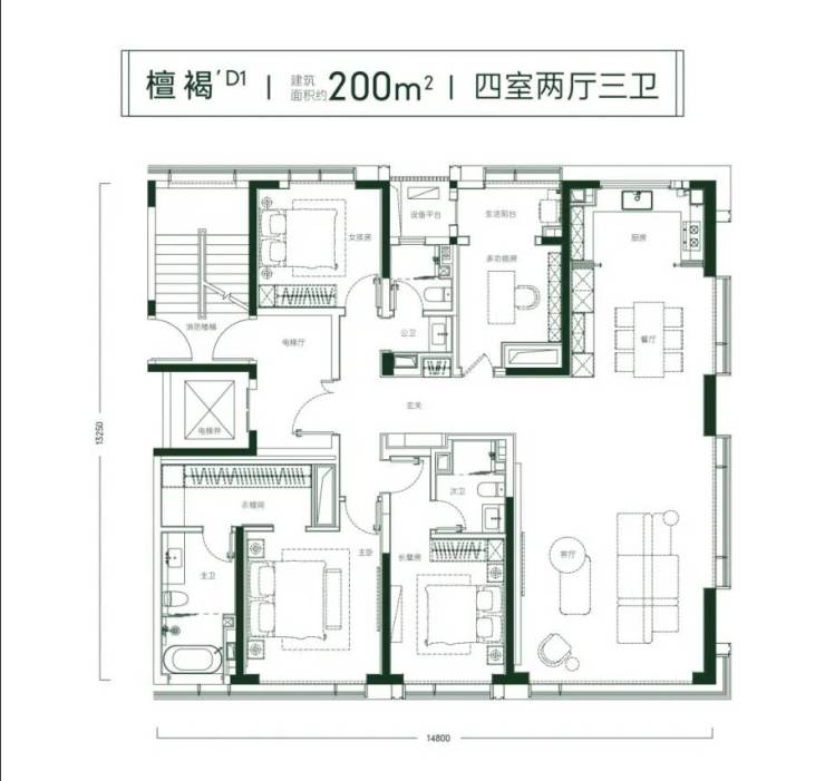 以独具符号的天幕落地窗,营造奢适观景视野无界聚场式宽境空间,纵横开阖贴合峯层家族式社交场景