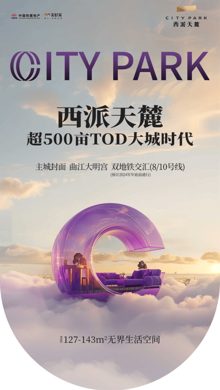 曲江大明宫腹芯之地,超500亩土地规划之下西派城TOD开创主城TOD大城时代生活新纪元,教、娱、商、居一体化布局,约15分钟TOD生活圈磅礴而生
