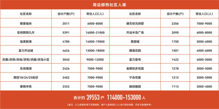 选择住宅总户数超过2000户的社区商铺,是赢商基本保障。(备注:以上数据来源于百度搜索,仅作为数据参考。)