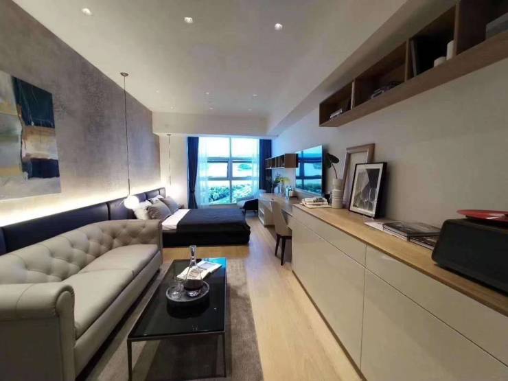 而曲江巴比伦艺术花园36m²的大开间,这种类型的户型在项目一层中占比较高,33-65m²的都有,分布于东西南北四个朝向,户型格局上略有差距,只是开间和进深尺寸有所不同。