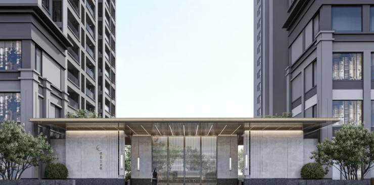 汲取现代人居美学底蕴,项目打造新中式风格外立面,大面积LOW-E中空玻璃幕墙,横平竖直的建筑线条,搭配米白、灰色高级色调,让项目品质脱颖而出,勾勒时尚天际线。