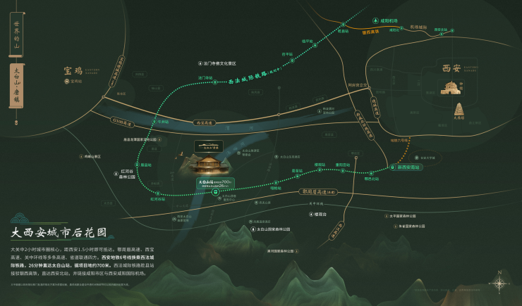 太白山·唐镇位于太白山麓北侧,毗邻国家AAAAA级旅游景区——太白山国家森林公园,规划总占地约1800亩,以诗仙李白和太白山为文化IP,以自然田园和温泉度假生活为载体,打造具有唐风唐韵的温泉旅居度假小镇。