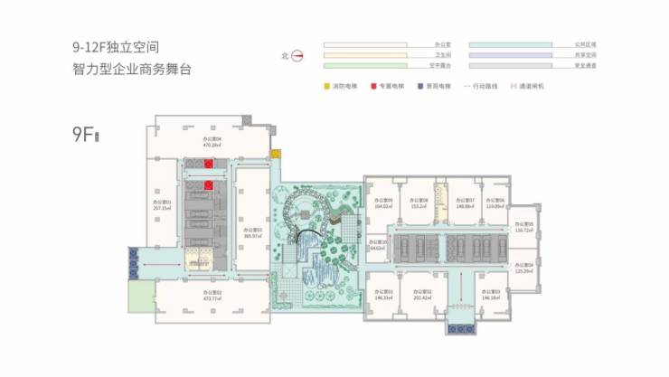 3、配备9部电梯,单梯服务面积:1700平