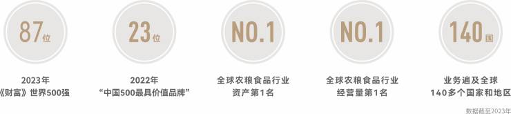 中粮集团业务主要涵盖农粮、食品、地产、金融四大领域,形成以核心产品为主线的17个专业化公司(平台),旗下拥有15家上市公司。2023年《财富》世界500强,位列87名。