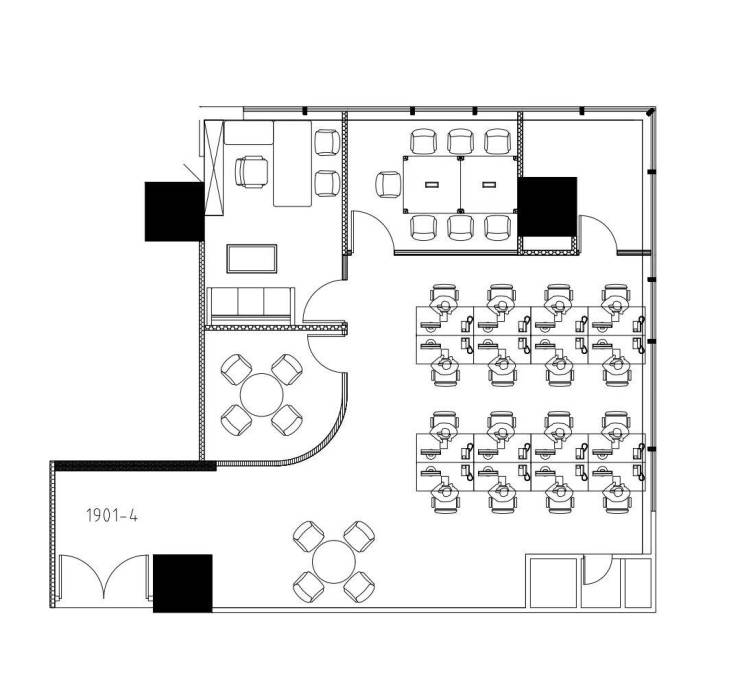 创业广场B座 房号:1908室 楼层:19层 参考面积:187㎡ 格局:4+16(工位) 朝向:东南