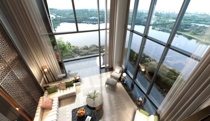 项目整体规划因地制宜,借助长安公园地块天然优势将建筑群落斜竖排布,依湖而建,营造四层低密大境