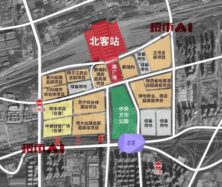 二、项目区位项目位于经开区的中心区,距离西安北客站仅3分钟,位于西安北站商圈核心位置。该区域目前无论是从交通条件、商业发展、产业规划、商务办公、医疗教育、居住环境等各方面来看,都是非常成熟完善的。