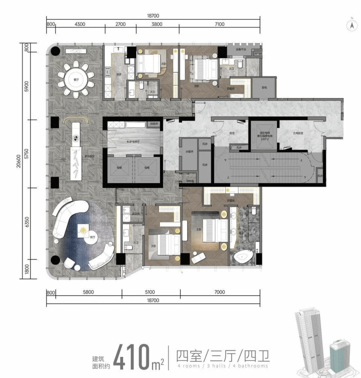 尊仪:约2000㎡酒店级入户大堂