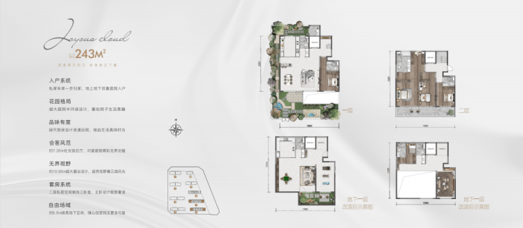 共享森系生活轴:仪式感空间、下沉艺术花园空中、云间会客厅 ;