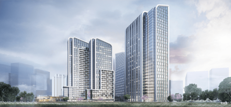 法国昂特名师操刀设计,打造“拟山筑城”建筑美学立面,溯源中国东方“山水”哲学理念,将写意山形融于立面美学,与千亩桃花潭公园遥相呼应,形成依山傍水、具有国际审美的商务人居地标。斩获欧洲设计界“欧洲设计界奥斯卡”A'Design Award建筑设计金奖;2024年1月荣获2023-2024年度第一批“建筑幕墙类”中国建筑工程装饰奖(陕西省仅5个项目获此殊荣)。