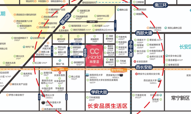 1、区域优势:三区交汇,半小时内自由穿梭长安、雁塔核心居住区、高新CBD、长安大学城板块;