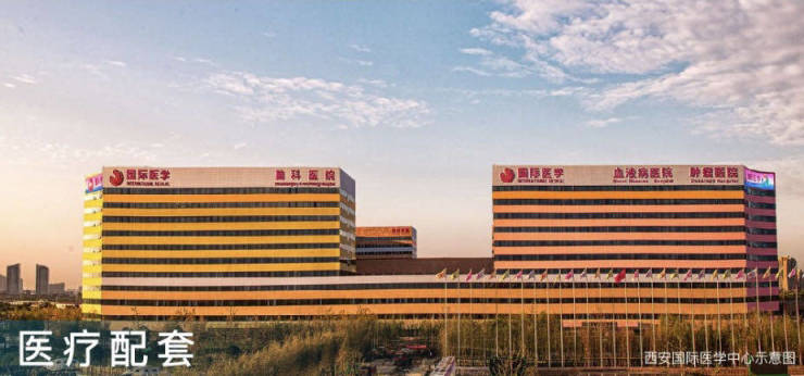 【医疗健康】:项目东侧约1.5公里西北最大的三级甲等医院-西安国际医学中心,项目南侧3公里西安市第一医院高新院区