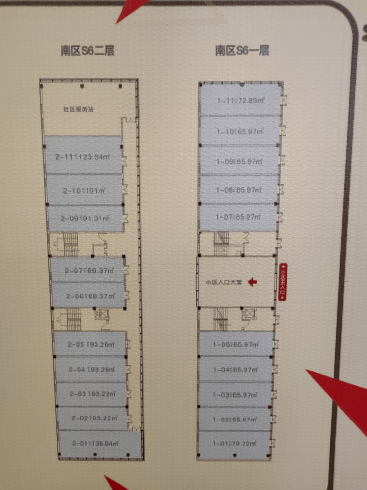 南区占地约48.8亩,S5-S6,面积约65~126平方米,一楼层高:6米,均价:22000左右,二楼层高4米,均价:10000左右。