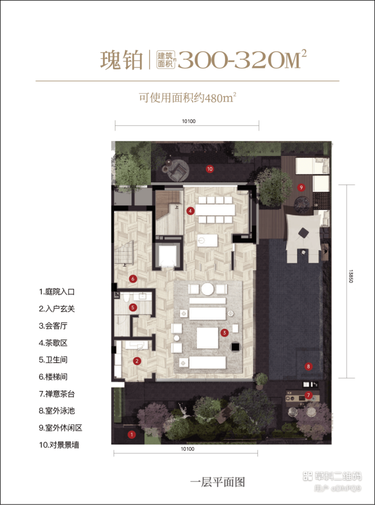 ·瑰铂——建筑面积约300-320m² 使用面积约480m²