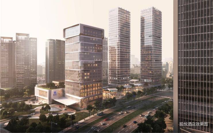 【商业连廊】源创中心打造二层商业连廊,以步行空间渗透其中,更好地融合了商务与社交的关系,让空间变得灵动而富于变化,同时超高层负二层与一层大堂连通凯悦酒店,畅通出行从容随心。