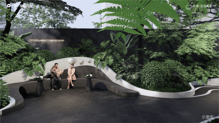 双轴奢景交错,酒店式环岛大堂、水幕交响庭院、下沉静水之庭等多重主题景观,演绎游园日常。