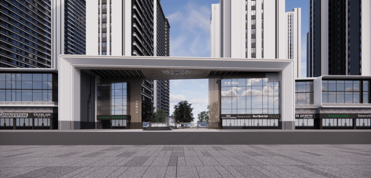 ⑤设计新潮:商业外立面采用玻璃幕墙+铝扣板的设计,展示新潮,昭示性强,保障人流导入,打造24小时便利生活圈