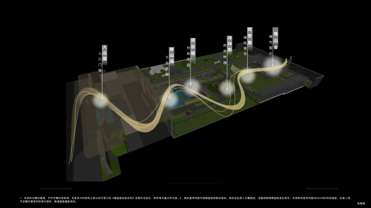 以山居为灵感,一条纵向景观轴串联山丘、山涧、山谷等自然元素,营造山居六境景观,全龄段设计贴心关照所有儿童的使用需求,更益智。