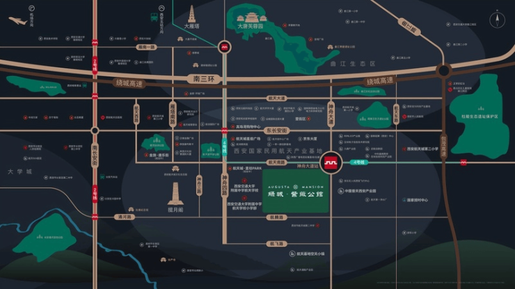 距星座广场(盒马鲜生)、壹街区(海底捞、人人乐)5分钟路程 距离曲江二期环球广场(华润万家、奥斯卡影城)仅10分钟车程 航天城里坊PARK、金旅唐乐街等规划中商业,休闲购物十分便利