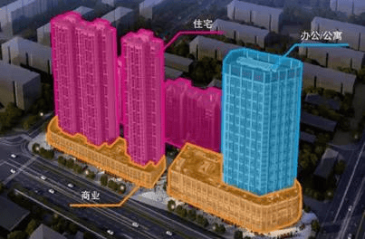 整体规划:4栋住宅,1栋公寓写字楼,Block商业街区