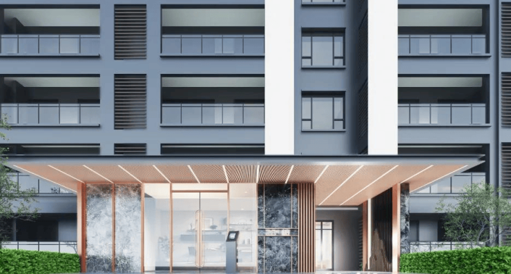 多重归家礼序,步步尊崇。一进门庭迎宾,铝板格栅大门搭配仿石材瓷砖营造高门望府的尊贵感,配合顶面线性灯带,构成归家迎宾的仪式阵列;二进山水中轴,森系雅居景观设计,层层铺陈,步移景异;三进楼栋大堂,精致绿植层叠,营造花园式入宅,酒店式入户门厅,高品质瓷砖、金属等材质,与顶面线性灯带、大堂内艺术画装饰相映衬,演绎精奢归家礼序