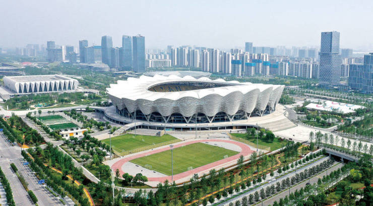双颜值立面:作为国际港务区西北门户,打造南北双颜值峯范立面,所有楼栋窗户采用蓝色全系三层中空low-e玻璃;优雅曲线游走于天际,代言奥体新一代标杆建筑美学 ,270°全幕景观视野。